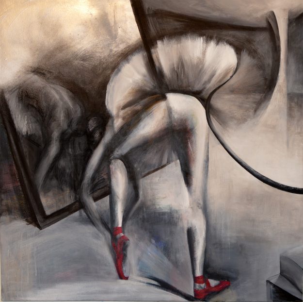 ZoomDetails Red ShoesTitle : Red Shoes Dimensions : 100×100 acrylics, spray, charcoal June 29, 2016Mirrors project (part)By moka